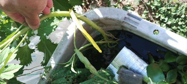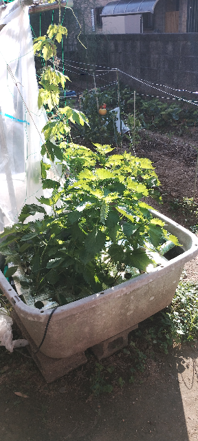 植えたゴーヤ3株(土2、hydroponics1)のうち、生長においてhydroponicsゴーヤが躍進を見せてます。